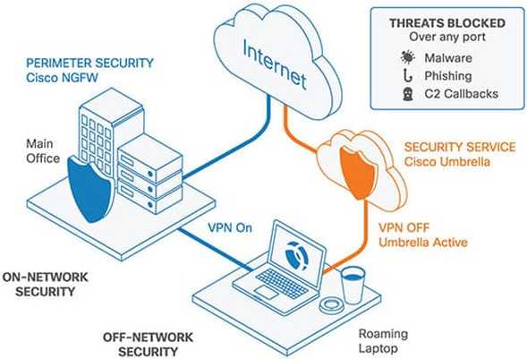 ‧ Deploy a stand-alone Umbrella Roaming Client for Windows or Mac OS X alongside any other remote access VPN client.2. Global Security by Default